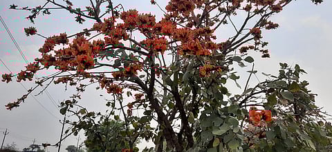 हिमायतनगर (जिल्हा नांदेड) : गिरीष्माच्या ॠतूची चाहूल लागली की, पानगळ झाल्याने राने, जंगली परिसर ओसाड दिसतात तरी मात्र रानात पळसाची झाडे केसरी रंगाच्या फुलाने लगडून गेल्याने वाटसरूचे लक्ष वेधून घेतात. " ग्रीष्मात दिसती ओसाड वने. उदासीनता पांघरून येतात हिरमुसल्या जिवाला पळसाची फूले नवी प्रेरणा देतात. " या काव्य पंक्ती ओटावर साहजिकच येतात.