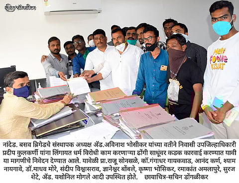 नांदेड : लिंगायत धर्मविरोधी काम करणाऱ्या ढोंगी साधूंवर कडक कार्यवाही करा. तसेच राष्ट्रीय लिंगायत समन्वयक अॅड. अविनाश भोसीकर यांच्यावर खोटे आरोप करुन दाखल केलेले गुन्हे रद्द करुन त्यांना पोलिस संरक्षण देण्यात यावे, या मागणीचे निवेदन बसव ब्रिगेडच्या वतीने जिल्हाधिकारी व जिल्हा पोलिस अधीक्षक यांना देण्यात आले.