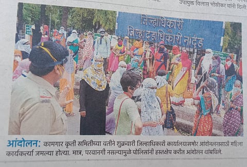 नांदेड शहरातील आशा वर्करच्या मागण्या घेऊन सीटू राज्य सचिव कॉ. उज्वला पडलवार यांच्या नेतृत्वाखाली महापालिकेत ठिय्या आंदोलन करण्यात आले. कोविड- १९ प्रोत्साहन भत्ता पाच हजार रूपये व आक्टोबर २०१८ चे रेकॉर्ड किपींगचे थकीत मानधन मिळवून घेण्यात यश आले. महापालिकेमध्ये झालेल्या आंदोलनाचे नेतृत्व कॉ. उज्वला पडलवार, रेखा धूतडे, कॉ. शरयू कुलकर्णी, द्रोपदा पाटील आदींनी केले.