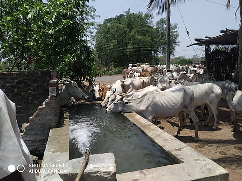 शिवणी ( जिल्हा नांदेड ) : किनवट तालुक्यातील अप्पारावपेठ (Kinwat Apparaopeth) येथील शेतकरी विनायकराव देशमुख (Vinayak Deshmukh) यांनी आपल्या गावापासून चार किलोमीटर अंतरावर असलेल्या शेतात एक पाण्याचे हौद (Water Tank) तयार करुन या हौदात दररोज पाणी सोडून केली जनावराच्या पाण्याच्या पिण्याची सोय. अप्पारावपेठपासून चार किलोमिटर अंतरावर हा विधायक उपक्रमाचे कौतुक होत आहे. (The good news: Farmers in Apparavpeth have provided water for their animals at their own cost)