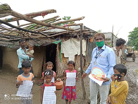 गोकुंदा (जिल्हा नांदेड) : आपले आयुष्य मास्क आणि घरात बंदिस्त झालेले असताना अतिदुर्गम आदिवासी किनवट तालुक्यातील जिल्हा परिषद केंद्रीय प्राथमिक शाळा मारेगाव ( वरचे ) येथील उपक्रमशील कलावंत शिक्षक सुरेश पाटील यांनी गृह भेटीत विद्यार्थ्यांना घराबाहेरच्या भागात "शाळा बंद शिक्षण सुरू " या उपक्रमांतर्गत शिक्षक जे फळ्यावर शिकवतात तेच भिंतीवर पत्र्यावर फरशा वर सोप्या भाषेत लिहून अभ्यास व स्वाध्याय देत आहेत.
