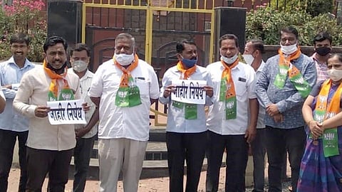 मुंबईचे माजी पोलिस आयुक्त परमबीर सिंह यांनी देशमुख यांच्यावर महिन्याला 100 कोटी रुपये वसुलीचे टार्गेट दिल्याचा आरोप केला आहे. त्याचे पडसाद उमटत आहेत. भाजपने आज आंदोलन करीत सरकारच्या भ्रष्ट कारभाराचा निषेध केला. दुपारी बाराच्या सुमारास भाजपचे कार्यकर्ते दसरा चौकात जमले. शासनाचा निषेध केला. वसुलीमंत्र्यांनी राजीनामा दिलाच पाहिजे..., तीन तिघाडी काम बिघाडी.., राज्यात राष्ट्रपती राजवट लागू करा... आदी घोषणा देण्यात आल्या.