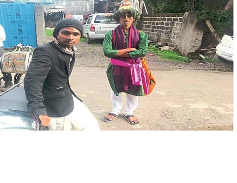 चिल्लर त्याच्या हाती टेकवली जात होती. कुतूहलाने त्याला विचारले तर "लॉकडाउनमुळे लोकं दारातही थांबवून घेत नाहीत, त्यांनाही कोरोनाची भीती आहे,' असे सांगतच त्याने पुन्हा चिपळ्या वाजविण्यास सुरवात केली. हिरवा झब्बा, पांढरी विजार, कंबरेला गुलाबी ओढणी आणि डोक्यावर मोरपिसांचा टोप घालून गल्लोगल्ली फिरणारा आधुनिक युगातील वासुदेव आणि त्याच्या सोबत असलेला त्याचा मामा ओंकार साळोखे दोघेही मूळचे माळेगाव-बारामतीतील आहेत.