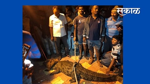 सांगली जिल्ह्यातील वाळवा तालुक्यातील साटपेवाडी येथे ग्रामस्थांना कृष्णा नदीकाठी मगर आढळून आली,
