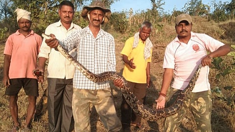 शेवटी अजगराने मुंगसाला गिळून टाकले. यानंतर अजगर दोन दिवस या ठिकाणी पडून राहिले. शेतकऱ्यांना या ठिकाणचे गवत कापायचे होते. यामुळे त्यांनी बेकनाळ (ता. गडहिंग्लज) येथील सुधाकर सुतार यांचेसी संपर्क साधला. बाळासाहेब धुमाळ, प्रकाश मोदर, संदीप जाधव, बाळासाहेब सावंत सर्व (रा.बेकनाळ) व अवधुत पोरे ,सुहास चौगूले (रा.बहिरेवाडी) यांनी शेतात जावून आठ फुट लांबीच्या अजगरला पकडून वनविभागाच्या ताब्यात दिले. सुधाकर सुतार यानी यापुर्वी कात्रज( पुणे) येथे सर्प विद्यालयात काम केले आहे.त्यानी अनेक सापाना व सरपटणा-या प्राण्याना जिवदान दिले आहे.