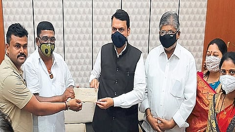 चंदगड : शहरातील विविध विकासकामे मार्गी लावण्यासाठी पाच कोटी रुपयांचा निधी उपलब्ध करावा, अशी मागणी नगरसेवक दिलीप चंदगडकर यांनी माजी मुख्यमंत्री देवेंद्र फडणवीस यांच्याकडे केली. फडणवीस कोल्हापूर दौऱ्यावर आले असता चंदगडकर, नगरसेवक सचिन नेसरीकर, नगरसेविका प्रमिला गावडे, रंजना कोकरेकर यांच्यासह भाजपच्या चंदगड तालुका महिला अध्यक्षा समृध्दी काणेकर, उद्योजक सुनील काणेकर यांनी त्यांची भेट घेऊन निवेदन दिले.