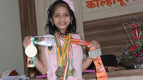 कोल्हापूर : शांतिनिकेतन स्कूलमध्ये इयत्ता तिसरीत शिकणाऱ्या अनुप्रिया अमितकुमार गावडे या विद्यार्थीनीने यशाचे नवे शिखर गाठत आपल्या नावाची नोंद इंडिया बुक ऑफ रेकॉर्ड व एशिया बुक ऑफ रेकॉर्डमध्ये केली.