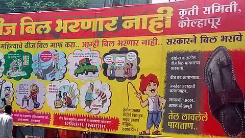 कोल्हापूर - घरगुती वीज बिले न भरण्याचा पवित्रा घेत वीज बिल भरणार नाही कृती समितीने मिरजकर तिकटी येथे उभारलेला फलक चर्चेचा विषय ठरला आहे. सहा महिन्यांचे वीज बिल माफ करा, अशी मागणी करण्यात आली आहे. कोरोना काळातील वीज मागणाऱ्या सरकारला, वीज कट करणाऱ्याला, जनतेवर जबरदस्ती करणाऱ्याला, खणखणीत झटका अस्सल कोल्हापुरी तेल लावलेले पायताण, असा आशही फलकावर झळकवला गेला आहे.