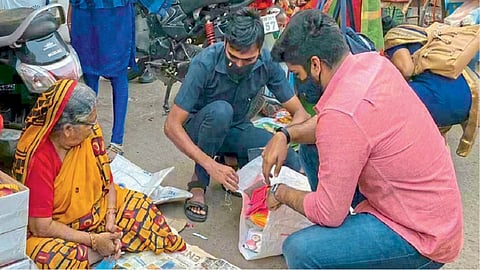 त्यांच्याकडून पणत्या खरेदी करत त्यांच्या स्वाभिमानी जगण्याला आधार देत आहेत. शाहूपुरीत राहणाऱ्या नजमा भाभींच्या पतीचे २० वर्षांपूर्वी निधन झाले अन् त्यांचा संसार कोलमडला; पण १० वर्षे महाद्वार रोडवर बसून पणती, उटणे विकत आहेत. काहींचा प्रतिसाद मिळतो, तर काहींचा नाही; परंतु पणती विक्रीतून जगण्याला आधार म्हणून चार पैसे जोडण्याच्या त्यांच्या धडपडीवर ‘सकाळ’ने प्रकाशझोत टाकला. ही बातमी व्हॉट्स ॲप, फेसबुकवर आदी सोशल मीडियावर व्हायरल झाली अन् आज नजमाभाभींकडे पणती खरेदीसाठी लोकांची झुंबड उडाली आणि आज त्यांच्या चेहरा आनंदाने फुलून गेला.