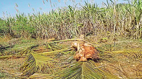 धनगरमोळा परिसरात गवत कापणी करणाऱ्या शेतकऱ्यांना त्याचे दर्शन झाले. चाळोबा परिसरात असलेल्या टस्कराने देवर्डे व माद्याळ परिसरात धुमाकूळ घातला आहे. त्याने माद्याळ येथील सुरेश शेळके व हनमंत शेळके यांच्या ऊस पिकाचे मोठे नुकसान केले आहे. त्यांने त्यांची दोन नारळाची झाडे जमिनदोस्त केली. त्याच्या वावराने शेतकरी हवालदिल झाले आहेत.