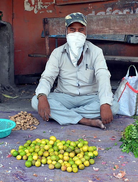 सोलापूर: हातावरचा धंदा लॉकडाउनने मोडल्याने म. फारूख यांच्यावर लिंबू व कोथिंबीर विकण्याची वेळ आली. सकाळी 11 आधी कुठून तरी लिंबू मिळवायचे व पोलिस येण्याच्या आधी ते विकण्याची धडपड म. फारूख भाई करत आहेत.