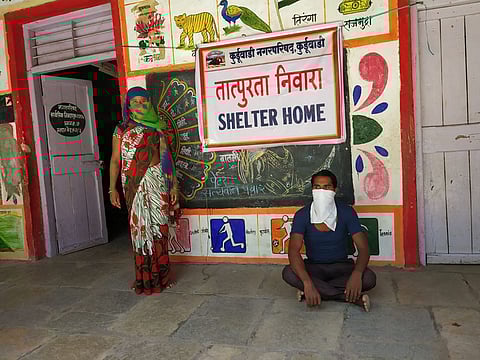 कुर्डुवाडी (ता. माढा, जि. सोलापूर) :"हमार छिचापर घर वाट देख रहेज... हमे घरनज जाय दो....' या बोलीभाषेतील शब्दात कुर्डुवाडी येथील शेल्टर होममध्ये असलेल्या तुकाराम राठोड व सविता राठोड या दांपत्याने भावनांना वाट मोकळी करून दिली. मागील अनेक दिवसांपासून आई-वडील अन् त्यांच्या मुलांत लॉकडाउन काळ होऊन उभा आहे. मुले एकटी गावी कशी राहात असतील याची या दांपत्याला चिंता लागून आहे.