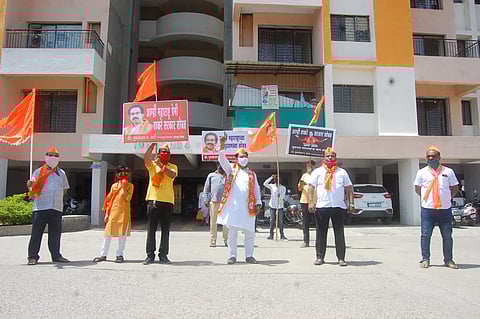 महाविकास आघाडीच्या विरोधात भाजपने आयोजिलेल्या काळे झेंडे दाखवून घरासमोर आंदोलन करण्याच्या विरोधात शिवसेनेने आयोजिलेल्या आंदोलनाप्रसंगी श्री. बरडे बोलत होते.