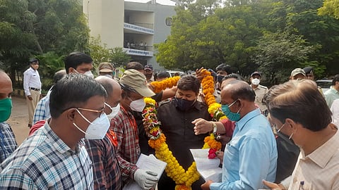 हे निवेदन देताना कॉलेज कर्मचारी युनियन सोलापूरचे अध्यक्ष राजेंद्र गोटे, सरचिटणीस अजितकुमार संगवे, कार्याध्यक्ष राजेंद्र गिड्डे, उपाध्यक्ष दत्ता भोसले आदी उपस्थित होते.