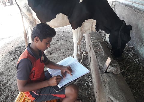 मोहोळ (सोलापूर) : पापरी (ता. मोहोळ) येथील यश दादासाहेब भोसले हा विद्यार्थी मोबाईल इंटरनेटला रेंज येत नसल्याने चक्क गुरांच्या गोठ्यात ऑनलाइन शिक्षण घेत आहे. त्याच्या या शिक्षण चिकाटीचे कौतुक मात्र सर्वत्र होत आहे.