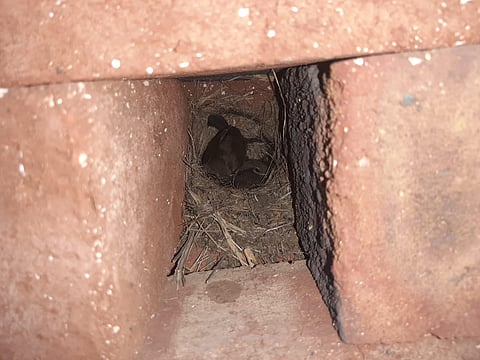 घरटे पाहणी केल्यास समजले की विटा काढल्यास घरटे पुर्ण पणे उघडे पडेल व पिल्ले जगणे शक्य होणार नाही. पिल्ले पुर्ण वाढ होईपर्यंत घरट्यात राहणे आवश्यक होते. कारण घरट्याशिवाय त्यांना दुसरी नैसर्गिक सुरक्षितता मिळण अशक्य होते. मिस्त्री व घरमालक शावण्णा अरवतवक्कल( गुरुजी) ह्यांना विटा न हालविण्याची विनंती करण्यात आली. परंतु मिस्त्री संजय कुंभार यांनी सांगितले की, हे बांधकाम सुरू करणे आवश्यक आहे. माझी मजुरी पुर्णपणे बुडेल.