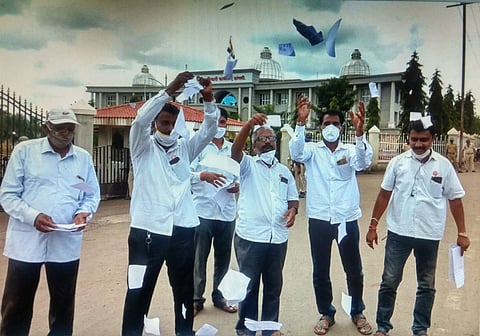 सांगली ः केंद्र सरकारने लोकसभेत चर्चा न घडवता, विश्वासात न घेताना कृषी बील मंजूर केल्याच्या निषेर्धात आज देशभर डाव्या चळवळी, डावे पक्ष, शेतकऱ्यांच्या काही संघटनांनी विरोध आंदोलन केले. कृषी बिलाचे प्रतिकात्मक पुस्तक फाडत माजी खासदार राजू शेट्टी यांच्या स्वाभिमानी शेतकरी संघटनेने येथे जिल्हाधिकारी कार्यालयासमोर घोषणा दिल्या. जिल्हाध्यक्ष महेश खराडे यांनी नेतृत्व केले.