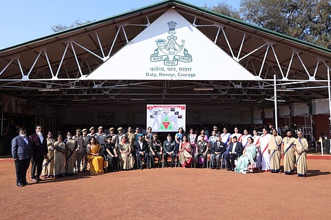 बेळगाव : येथील मराठा लाईट इन्फन्ट्री रेजिमेंटल केंद्रात १९४७ साली झालेल्या भारत-पाक युद्धाला ७५ वर्षे पूर्ण झाल्यानिमित्त 'इन्फन्ट्री डे' बुधवारी (ता. २७) साजरा झाला. दरवर्षी २७ ऑक्टोबरला मराठा इन्फन्ट्रीकडून हा दिवस साजरा केला जातो. पण यंदा तो वेगळ्या पद्धतीने साजरा करण्यात आला. कोरोना संसर्ग नियंत्रणात ठेवण्यासाठी लढलेल्या कोरोना वॉरियर्सचा सन्मान करण्यात आला. कॅम्पमधील महिला पोलीस स्थानकातील महिला कॉन्स्टेबल, सरकारी रुग्णालयात काम करणाऱ्या आया आणि नर्स, तसेच मिलिटरी हॉस्पिटलमधील डॉक्टर आणि नर्स यांचा यावेळी सत्कार झाला. आर्मी वाइफ वेल्फेअर असोसिएशनच्यावतीने या महिलांचा सन्मान झाला.