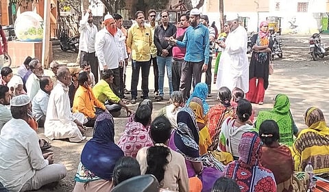 विक्रेत्यांनी पालिका आवारात माजी नगरसेवक कपील ओसवाल यांच्यासमोर गाऱ्हाणे मांडले. नवी जागा व तिथे सोयीसुविधा अपुऱ्या आहेत, स्थलांतराला स्थगिती द्यावी अशी भुमिका विक्रेत्यांनी मांडली. शाकीर तांबोळी, मन्सुर मोमीन, सोमनाथ फल्ले, उपस्थित होते. विक्रेत्यांनी मुख्याधिकारी अरविंद माळी यांना निवेदन दिले.