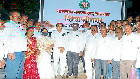 तासगाव (सांगली) : तासगाव शहरातील खाडेवाडी म्हणून ओळखल्या जाणाऱ्या रहिवासी भागाचा नकाशा तयार होऊन स्वातंत्र्यानंतर तब्बल ७३ वर्षांनी आमदार सुमनताई पाटील यांच्या उपस्थितीत एका कार्यक्रमात या भागाचे शिवाजीनगर असे नामकरण करण्यात आले. सुमारे ५५० लोकसंख्येचा हा भाग कागदावर नव्हताच !