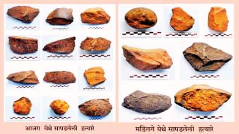 दगडापासून तयार केलेली हात कुऱ्हाड, फरशी, तोड हत्यार (Stone Weapons), तासणी अशी हत्यारे मोठ्या आकाराचा दगडी छिलका, गोटा किंवा गाभ्यापासून तयार केलेली आहेत. इथे आढळलेली हत्यारे प्रमाणबद्ध, सुबक, धारदार कडा असलेली आहेत. कृष्णा नदी वगळता सर्व हत्यारे कलादगीच्या क्वार्टझाईट खडकाची आहेत.