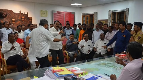कोल्हापूर : मराठा आरक्षणासंदर्भात उपमुख्यमंत्री अजित पवार (Ajit Pawar) यांनी अॅन्टी चेंबरमध्ये घेतलेल्या बैठकीत एका अधिकाऱ्याने आक्षेपार्ह विधान केल्याप्रकरणी सकल मराठा समाजाच्या पदाधिकाऱ्यांनी जिल्हाधिकारी राहुल रेखावार (Rahul Rekhawar) यांना जाब विचारला.