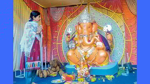कोल्हापूर : लहानपणीच आई-वडिलांचे छत्र हरपले, आम्ही तिघी बहिणी तिशीत असतानाच भावांचेही आकस्मित निधन झाले. भाऊ गेल्यानंतर ‘खाली जमीन वर आकाश’ अशी अवस्था होती. यावेळी ज्याच्या पायाशी बालपण गेले, त्या गणपतीनेच आम्हाला सावरले. बाप्पाच्या कृपेने जोडलेल्या माणसांमुळं आम्हाला कष्ट करून चार घास खाण्याचे बळ मिळाले, आठ नंबर शाळेजवळच्या सुमती भोईटे आणि अरुंधती भोईटे संवाद साधत होत्या आणि घरासमोरील सार्वजनिक गणपतीच्या साक्षीनेच त्यांचा एकूणच प्रवास उलगडत असतो.