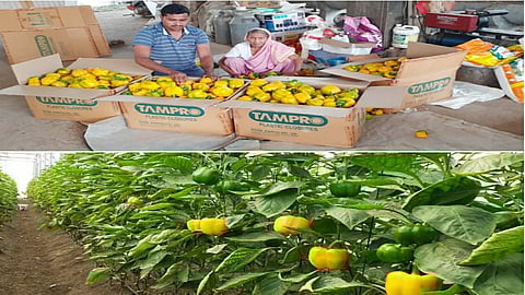 नूसिहवाडी (कोल्हापूर) : गणेशवाडी ता. शिरोळ येथील प्रवीण बोरगावे या मेहनती जिद्दी अभ्यासू शेतकऱ्यांने कलर कॅप्सिकम म्हणजेच लाल - पिवळ्या रंगाच्या ढोबळी मिरची चे विक्रमी उत्पादन घेवून यशाचे रंग भरले आहेत. गेल्या वर्षी आलेला महापूर व सध्याच्या कोरोना च्या संकटाला न डगमगता वीस गुंठयात सतरा लाख रुपयांचा नफा मिळवला आहे.