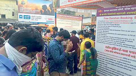 दिवाळीनंतर देशभरातून भाविक मंदिरात दर्शनासाठी येत आहेत. कोल्हापुरात येण्यापूर्वी किंवा आल्यानंतर मोबाईलवरून ई-पासची नोंदणीही ते करतात. पण, तो मोबाईलमध्ये नेमका कुठे सेव्ह केला आहे?, हे अनेकांना समजत नाही. त्याशिवाय अनेकांनी दुसऱ्यांच्या मोबाईलवरून नोंदणी केलेली असते आणि गर्दीमुळे ते अन्यत्र राहतात. त्यामुळेही दर्शन रांगेत गर्दी अधिक असल्यास गोंधळ उडतो. या साऱ्या पार्श्वभूमीवर ई-पासची प्रिंट काढून घेतली जाते. मात्र, त्यासाठी मंदिर परिसरातील दुकानदारांकडून प्रतिप्रिंट किमान २० ते ३० रुपये आकारले जातात.