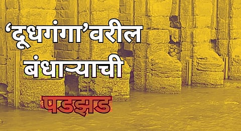 नंदगाव : वडकशिवाले व बाचणी या दोन्ही गावांना तसेच करवीर-कागल तालुक्यांना जोडणाऱ्या दूधगंगा नदीवरील (Dudhganga River) जुन्या कोल्हापूर (Kolhapur) पद्धतीचा बंधाऱ्याची पडझड झाली आहे. याकडे लक्ष देत बंधाऱ्याची डागडुजी करावी, अशी मागणी बाचणी व वडकशिवालेसह पंचक्रोशीतील ग्रामस्थांतून होत आहे.