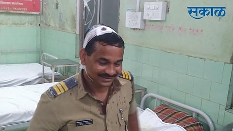 याबाबत पोलिसांतून व घटनास्थळावरून मिळालेली माहिती अशी, अलम शेख व बैथूल शेख यांच्यावर (मंगळवार ता.2) शाहूवाडी पोलिस ठाण्यात शासकिय कामात अडथळा आणल्याचा गुन्हा नोंद झाला होता. मद्यधुंद अवस्थेत या दोघांनी दंगा घालून तोडफोड केली होती. आज त्यांना येथील न्यायालयात हजर करण्यासाठी नेत असताना अलम याने न्यायालयाच्या आवारात गेटजवळ जाताच छातीत दुखत असल्याचा बहाणा करून खाली वाकून रस्त्यातील दगड उचलून पोलिस चिंतामणी बांबळे यांच्या डोक्यात मारला. कांबळे त्यात गंभीर जखमी झाले. हिसका देवून अलम व बैथूल यांनी यावेळी पलायन केले.
