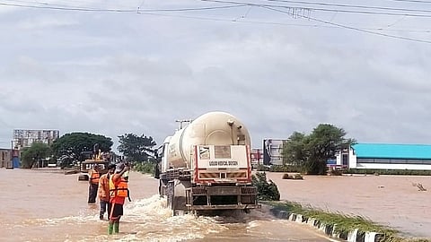 शिरोली पुलाची (कोल्हापूर) : पुणे - बंगळूर राष्ट्रीय महामार्गावरील (Pune Bangalore National Highway) वाहतूक तब्बल चार दिवसांनी सकाळी दहा वाजता सुरू झाली. कोल्हापूरच्या दिशेने जाणाऱ्या महामार्गावर सुमारे एक फूट पाण्यातून सुरवातीला पाण्याचा टँकर सोडण्यात आला. त्यानंतर पाणी, पेट्रोल, डिझेल, दूध, ऑक्सीजन व मालवाहतूक (Water, petrol, diesel, milk, oxygen) ही अत्यावश्यक सेवेतील अवजड वाहणे सोडण्यात आली. महामार्गावर एका बाजूला सुरक्षीततेसाठी पॉकलॅड उभा करण्यात आला आहे. अत्यावश्यक सेवेतील वाहन कोल्हापूरात पोचल्याने, शहरातील पेट्रोल, डिझेल उपलब्ध होणार आहे. तसेच पुणे महापालिकेचे पाण्याचे टॅंकर शहरात पोचले आहेत, त्यामुळे शहरात टॅंकरने पाणी पुरवठा सुरळीत होण्यास मदत होणार आहे.