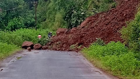गुडाळवाडीजवळ डोंगराला लागून नदीच्या काठाने असलेल्या रस्त्यावर डोंगराचा काही भाग आज सकाळी ढासळला.