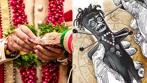 आजरा : आजऱ्यातील एका युवकाचे आपल्या मुलीशी लग्न (Marriage) होऊ नये म्हणून जादूटोणा व अघोरी प्रकाराचा अवलंब केल्याप्रकरणी आजरा पोलिसात (Ajara Police Station) भोंदूबाबासह तिघांच्या विरोधात गुन्हा नोंद झाला आहे. भोंदूबाबा व रेश्मा बुगडे, शामराव बुगडे (रा. मलिग्रे, ता. आजरा) सुनील निऊंगरे कागिनवाडी (ता. आजरा) अशी त्यांची नावे आहेत.