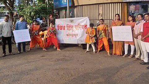 कोल्हापूर - कोरोनाचा प्रादुर्भाव रोखण्यासाठी शासनाने राज्यातील मंदिरे बंद केली. आता आठ महिने होऊन गेले तरी अद्याप मंदिरे उघडलेली नाहीत. मद्याची दुकाने, मंडई, व्यायामशाळा, कार्यालये सर्व सुरू झाले तरी अद्याप मंदिरे बंदच ठेवली आहेत. मंदिरे ही आमची श्रद्धास्थाने आहेत. आमच्या श्रद्धांशी शासनाने खेळू नये. त्वरीत राज्यातील सर्व मंदिरे उघडावीत. अशी मागणी विश्व हिंदू परिषदेतर्फे करण्यात आली. आपल्या मगणीसाठी आज त्यांनी मिरजकर तिकटी येथे आंदोलन केले.