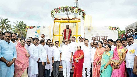 राष्ट्रवादी काँग्रेसने पुतळा अनावरणानिमिताने जोरदार शक्तीप्रदर्शन केले. आजच्या कार्यक्रमाला उच्चांकी गर्दी झाली होती. शरद पवार यांच्यासह अनेक वक्त्यांनी रोहितच्या रूपाने पुन्हा एक आबा तयार झाल्याची भावना व्यक्त केली.