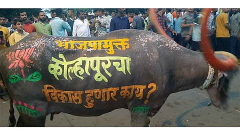 कोल्हापूर - गोकुळचे राजकारण गल्ली बोळापर्यंत कसे येऊन ठेपले आहे, याचे प्रत्यंतर दिपावली पाडव्याच्या निमित्ताने होणाऱ्या म्हशीं पूजन सोहळ्यात दिसून आले. दूध व्यवसायावर आधारित गोकुळच्या राजकारणावर सत्ता मिळवण्यासाठी विरोधी गटाचे सुरू असलेले प्रयत्न आज म्हशींच्या सजवण्यात ही दिसून आले. ,"आमचं ठरलय, आता गोकुळ उरलय' ही सत्तारूढ गटाला आव्हान देणारी घोषवाक्ये आज चक्क म्हशीच्या अंगावरही लिहिण्यात आली.