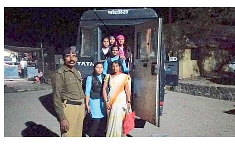 मुलींना पोलिस व्हॅन मध्ये बसवुन रवानगी