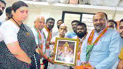सांगली - केंद्रीय महिला बाल कल्याण मंत्री स्मृती इराणी यांनी आज शिवप्रतिष्ठानचे संस्थापक संभाजी भिडे यांची भेट घेऊन आशीर्वाद घेतले. श्री. भिडे यांनी त्यांना राजमाता जिजाऊंच्या जयंतीनिमित्त रायगडाच्या पायथ्याला पाचाड येथे जिजाऊंच्या समाधीस्थळी येण्याचे निमंत्रण दिले. श्री गणपतीची प्रतिमा भेट देऊन सत्कार केला.
