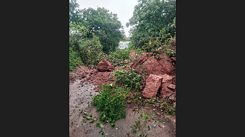पन्हाळा व परिसरात होणाऱ्या सततच्या जोरदार पावसामुळे रेडेघाटी परिसरात शाडूचा भराव रस्त्यावर कोसळल्याने पन्हाळ्याहून पावनगडला जाणारा रस्ता बंद झाला आहे.