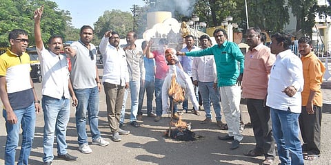 खर्गे यांच्या पुतळ्याचे केले दहन