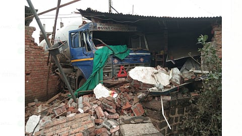 2) अपघातग्रस्त गॅस टॅंकर हा रिकामा होता. हा टँकर दुकानांच्या बाजूला असलेल्या वीजवाहक तारांच्या खांबाला घासून दुकानात घुसला आहे. टँकर रिकामा असल्याने पुढील मोठा अनर्थ टळला आहे.