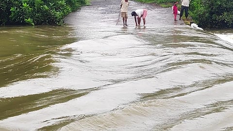 अक्कलकोट (सोलापूर) : अक्कलकोट तालुक्यातील (Akkalkot Taluka) बोरगाव व घोळसगाव तसेच परिसरात या आठवड्यात जोरदार पावसाने (Heavy Rain) हजेरी लावल्याने बोरगाव ते घोळसगाव ओढ्यावरील पुलावर सतत पाणी येऊन वाहतूक बंद पडत आहे. यामुळे परिसरातील बोरगाव, वागदरी व घोळसगाव या गावांचा संपर्क तुटला आहे. अनेक शेतकरी (Farmers) प्रवासी पलीकडे अडकले आहेत. बोरगाव ग्रामस्थांची 60 टक्के शेती ही ओढ्याच्या पलीकडे असून, त्यांना त्यांच्या शेतीकडे जनावरांना चारापाणी करण्यासाठी जाणे अडचणीचे ठरत आहे. काही जण धोकादायकरीत्या नाइलाजाने पाण्याने वाहणाऱ्या ओढ्याच्या पुलावरून जीव धोक्यात घालून जात आहेत.