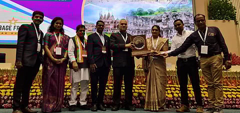 मंगळवेढा (सोलापूर) : जिल्ह्यातून एकमेव पात्र झालेल्या मंगळवेढा नगरपालिकेचा कचरा मुक्त शहर म्हणून नगराध्यक्षा अरुणा माळी व मुख्याधिकारी निशिकांत प्रचंडराव यांचा नवी दिल्लीत गौरव करण्यात आला.