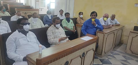 सोलापूर - जिल्ह्यातील व्यवसाय सुरु झाले, शहरातील व्यवसाय सुरु करण्याची परवानगी द्यावी अशी मागणी करीत सोलापूर शहरातील व्यापाऱ्यांनी आज शनिवारी महापालिका आयुक्तांना निवेदन दिले. यावेळी माजी आमदार दिलीप माने, केतन शहा, मोहन सचदेव यांच्यासह व्यापारी मोठ्या संख्येने उपस्थित होते.