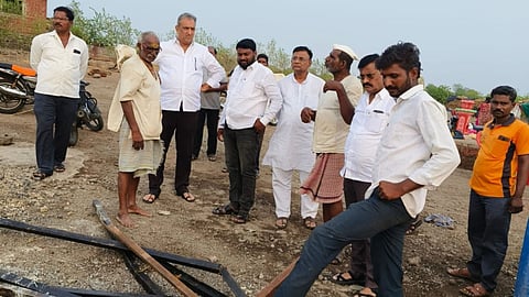 काल सायंकाळी मंगळवेढा तालुक्याच्या ग्रामीण भागात अवकाळी वादळामुळे शंभरहून अधिक घराचे पत्रे उडून गेले, जनावराच्या शेडचे नुकसान झाले,तर फळबागा व त्यावरील आच्छादनचेही नुकसान झाले.तर ठिकाणी जनावरेही जखमी झाले व नागरिकांना देखील पत्रावरील दगड पडून जखमी झाले.या झालेल्या नुकसानीची पाहणी आज त्यांनी केली. त्यावेळी ते जालिहाळ येथे बोलत होते त्यांच्या समवेत दामाजी कारखान्याचे संचालक औदुंबर वाडदेकर, युन्नुश शेख,माजी सरपंच सचिन चौगुले नाथाबा शेंडगे, सुरेश कांबळे,भारत शेंबडे,आप्पासो सोलनकर,मनोज सोलनकर,दत्ता कर्वे,अंकुश शेंबडे,नाना टपरे,मारुती शेंडगे,दत्ता शेंडगे आदी उपस्थित होते.