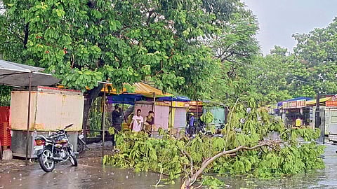 एसटी स्टँड परिसर, रंगभवन चौक, निराळी वस्ती रोड, सम्राट चौक येथील सखल भागात पाणी साचल्याने नागरिकांसह दुचाकीस्वारांची पंचाईत झाली. दुसरीकडे डफरीन हॉस्पिटलच्या संरक्षक भिंतीवर मोठ्या झाडाची फांदी तुटून पडली. यामुळे काही वेळ वाहतुकीस अडथळा निर्माण झाला होता.
