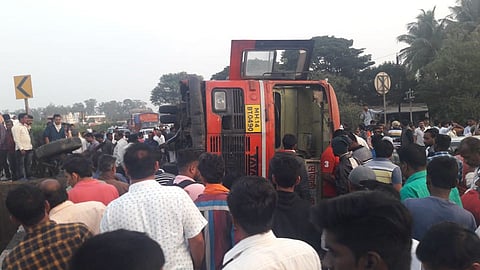 उंब्रज (ता. कऱ्हाड) : राष्ट्रीय महामार्गावर शिवडे येथील मांड नदीच्या पुलावर महाबळेश्वरकडे निघालेली एसटी पलटी होऊन अपघात झाला. एसटी मध्ये सुमारे 62 प्रवासी असून, त्यातील अनेकजण जखमी झाले आहेत. जखमींना तातडीने येथील खाजगी रुग्णालयात उपचारासाठी दाखल करण्यात आले आहे. या दुर्दैवी अपघातामुळे अनेक प्रवाशांच्या हृदयाचा ठोकाच चुकला.