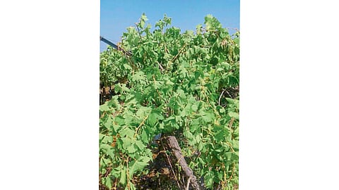 सुपर सोनाका द्राक्षे मऊ पडण्यास सुरुवात झाली. महिन्याभरात द्राक्षे जाणार होती. मागील सोमवारी रात्री या बागेवर अज्ञातांने तणनाशक औषध फवारले. ही बाब सकाळी लक्षात आली.