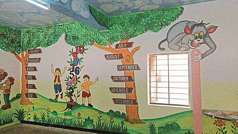 सांगली : सध्या बहुतांश महापालिका शाळा म्हणजे मळक्या भिंती...सर्वांचेच दुर्लक्ष... यामुळेच शहरातील कित्येक शाळा बंद पडल्या असून काही शाळा त्या वाटेवर आहेत. अशातच सांगली शहर स्वच्छतेसाठी काम करणाऱ्या निर्धार फौंडेशनचे अध्यक्ष राकेश दड्डणावर यांनी महापालिका शाळा क्रमांक 7 दत्तक घेऊन शाळेचा लोकसहभागातून शाळेचा कायापालट केला आहे. शाळेची आतून बाहेरून रंगरंगोटी तसेच वर्गखोल्या, कंपाऊंडवर बोलक्या भिंती साकारण्याचे काम अत्यंत नाविन्यपूर्ण साकारण्यात आले आहेत.